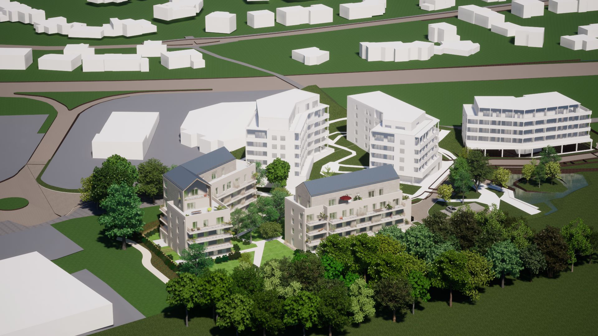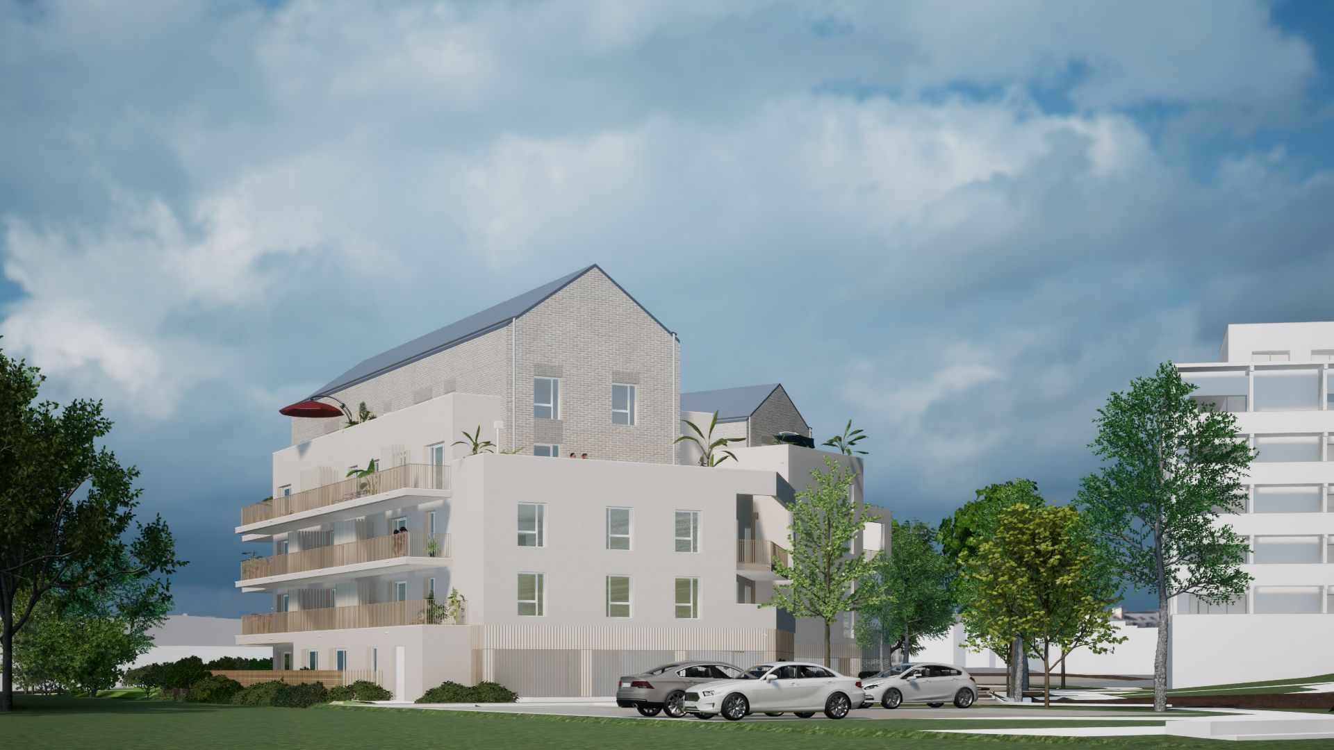 Projet | Construction de 46 logements à Chantepie Maître d'ouvrage | Neotoa SHAB | 2 870 m2 Montant des travaux | 6 450 000 € HT Missions d'économie | Mission de base loi MOP Architecte(s) | GOLHEN associés Etat | En cours d'étude